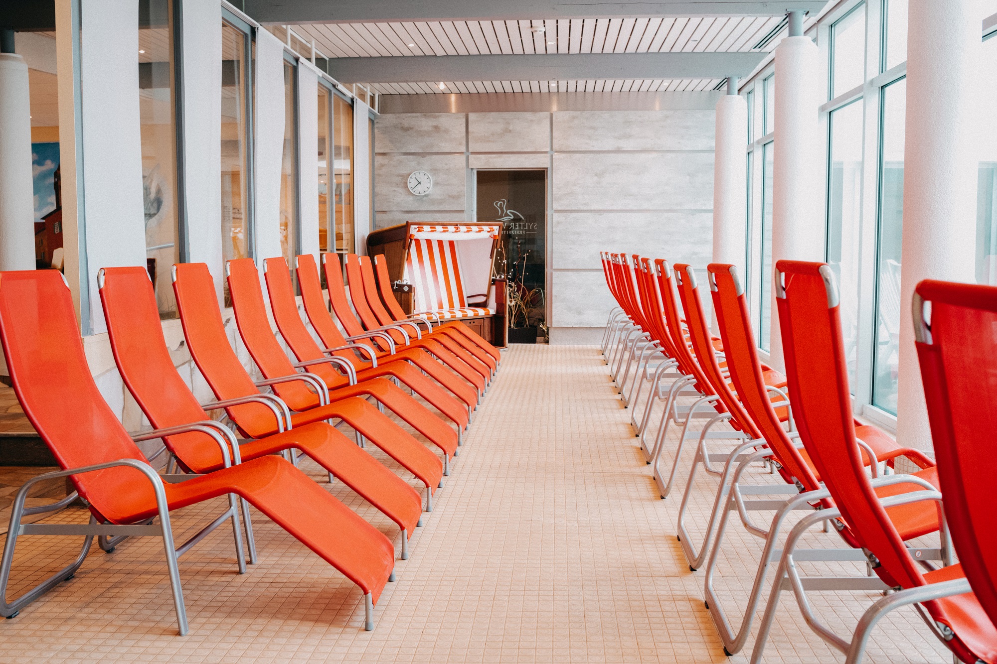 Sowohl im Außenbereich als auch im Innenbereich finden Sie Ruhebereiche mit Liegen. Genießen Sie von hier aus den Blick auf die Nordsee oder schließen Sie für einen kurzen Moment die Augen – lassen Sie die Ruhe, eine feine Sylter Brise und die Sonnenstrahlen einfach auf sich wirken.